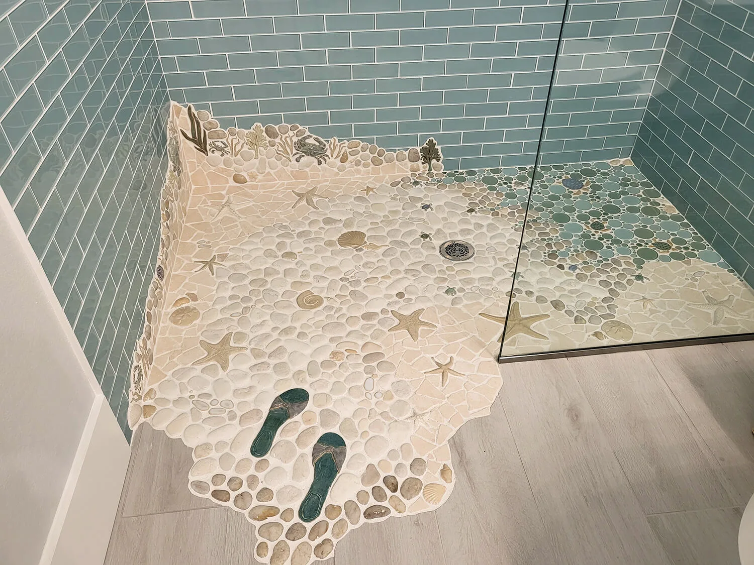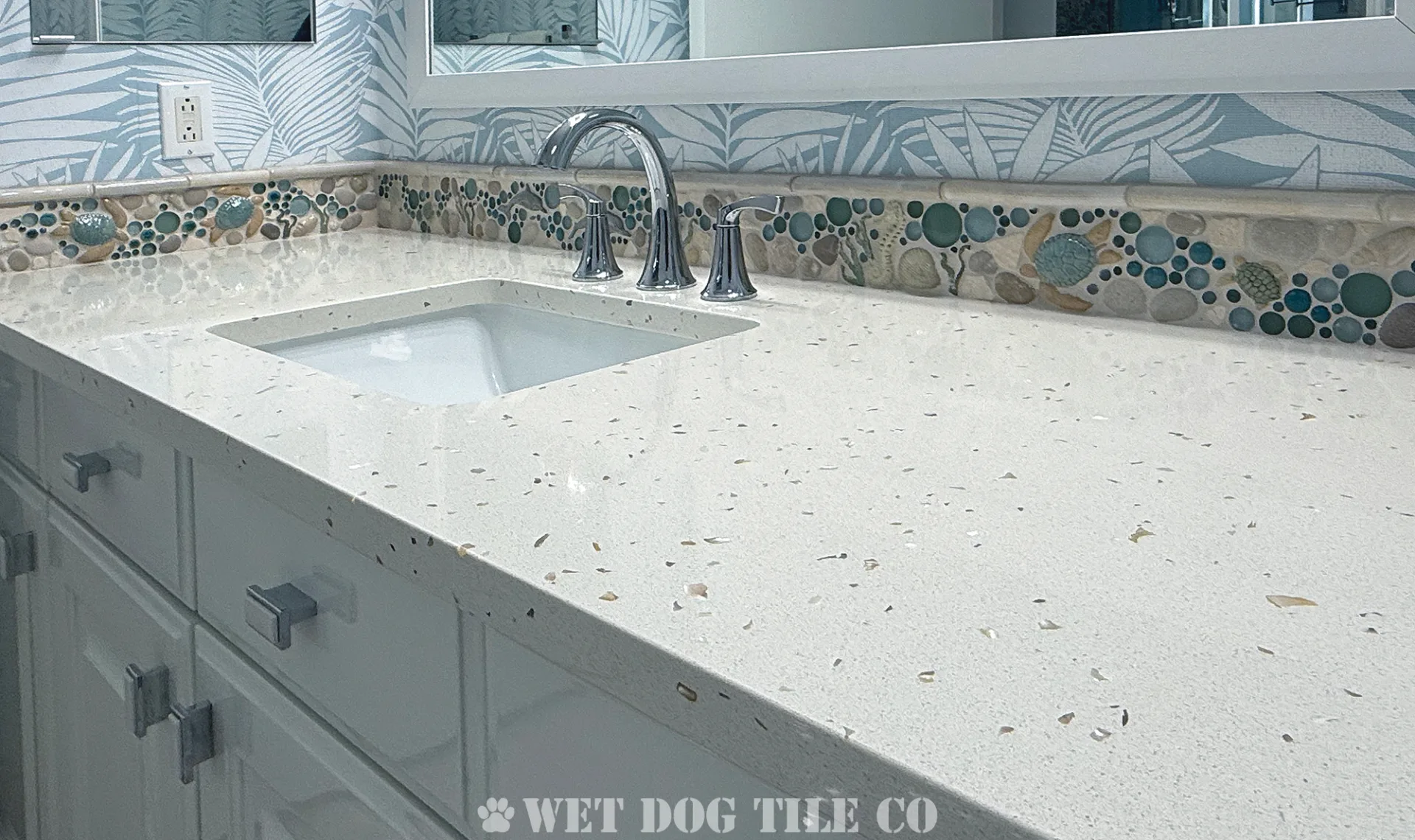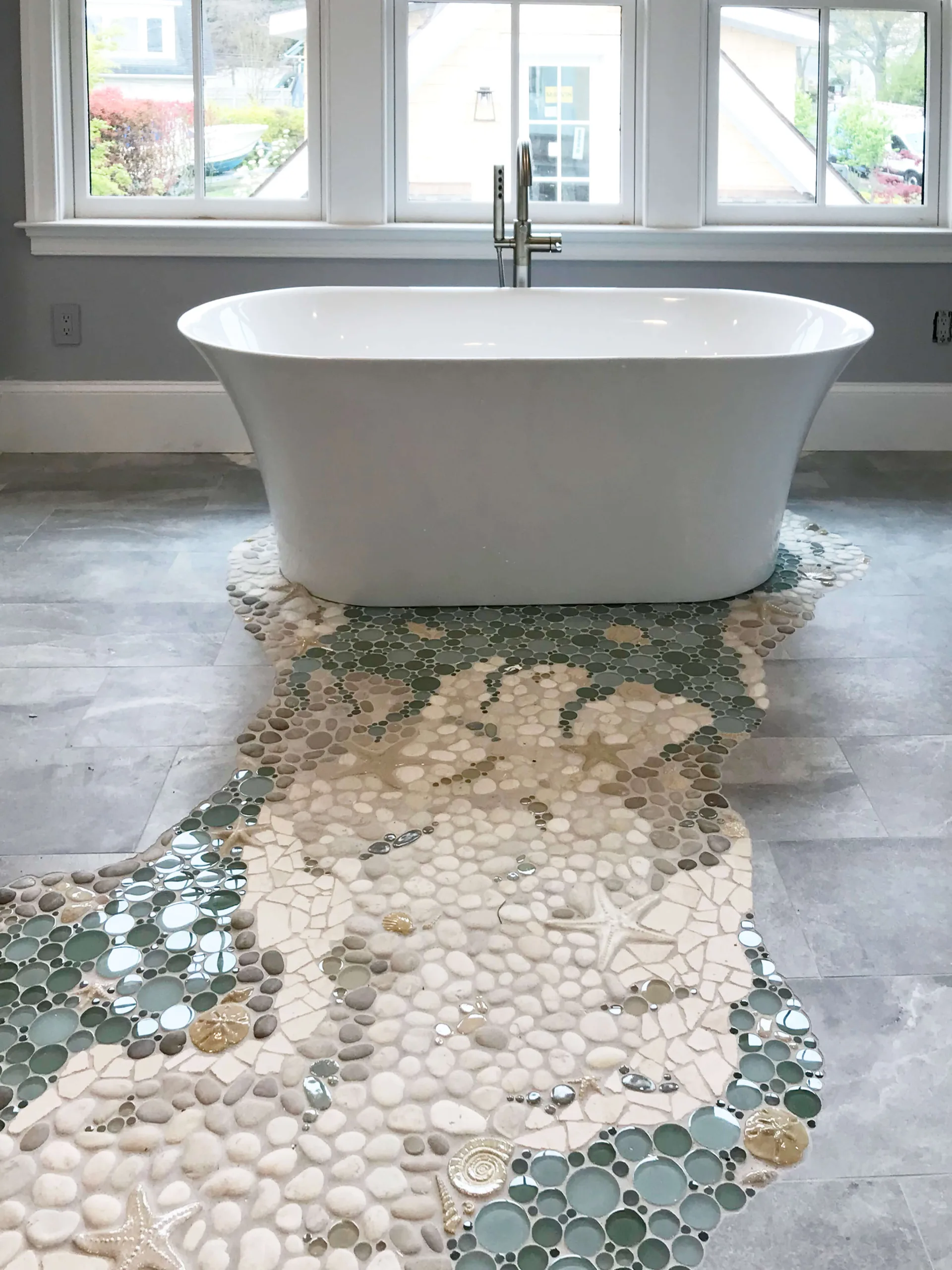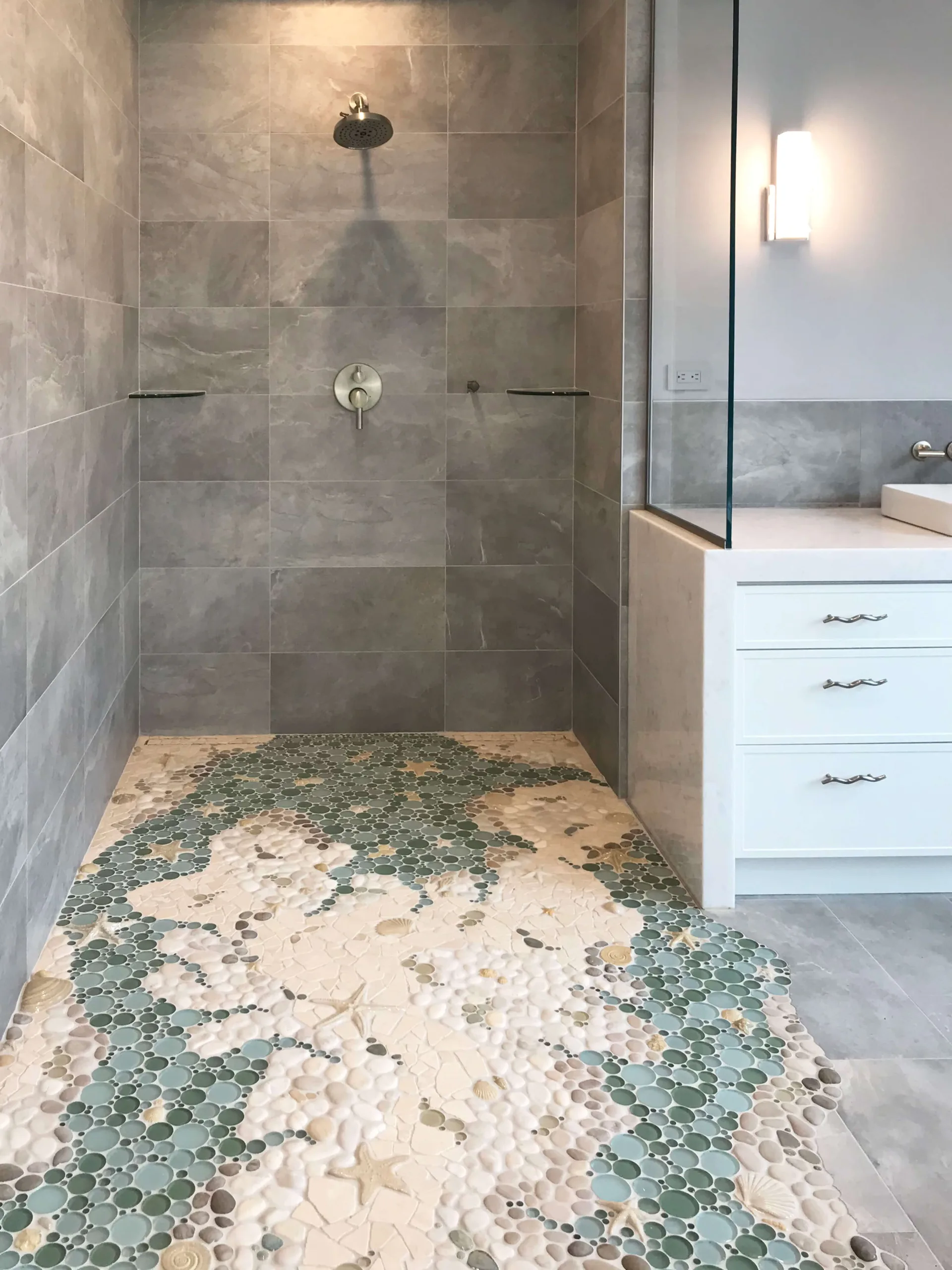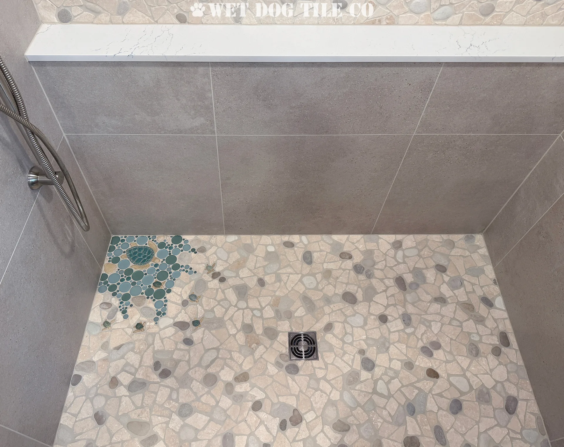 A: Wet Dog Tile Co uses various natural materials in our mosaic tile, resulting in a tactile surface that is slip-resistant! We take into account the surface and plan accordingly to ensure a safe and ideal installation without sacrificing style or charm.