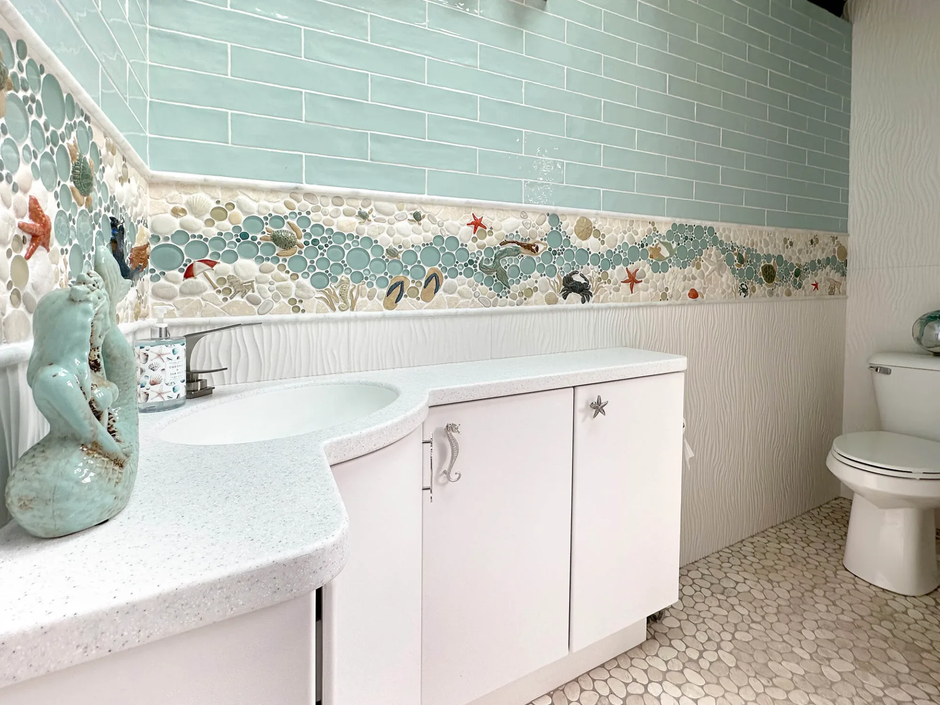 Our versatile tile collection allows us to bring any scene to life. From tranquil beaches with starfish and shells to serene marshes with great blue herons, or even snow-capped mountains with owls and bears, we have tile designs to suit every taste.