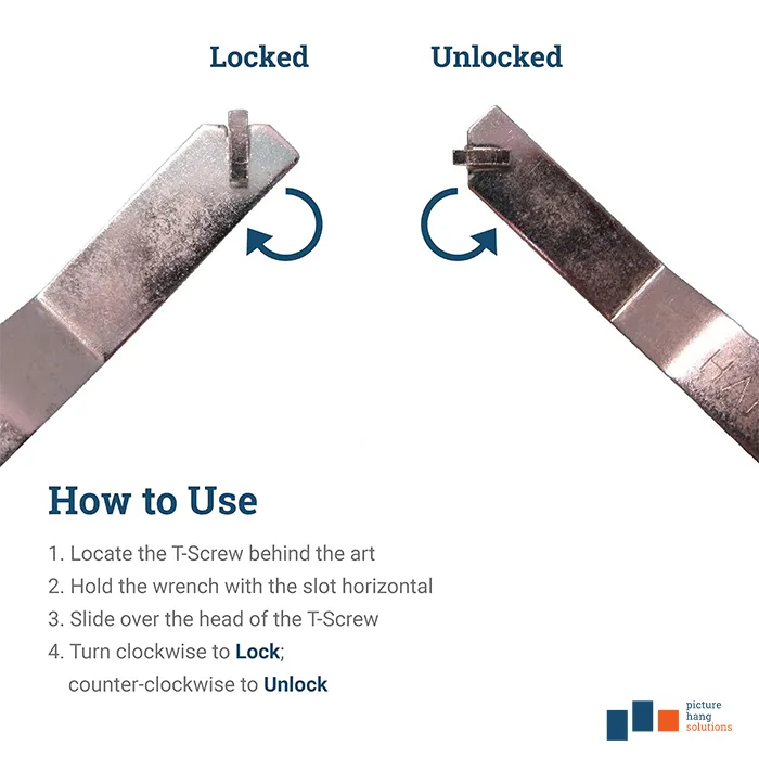 Included with every framed mural are French Cleat Hangers, T-Lock Screws, and a T-Lock Wrench from Picture Hanging Solutions for an easy and secure hanging process. For detailed instructions download our easy-to-follow PDF with in-depth instructions.